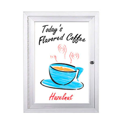 Made for the Outdoors, these "SwingCase" Weather Resistant, Enclosed Marker Board Display Cases come in several styles, including a standard aluminum cabinet that's 2" deep with magnetic porcelain on a steel writing surface.