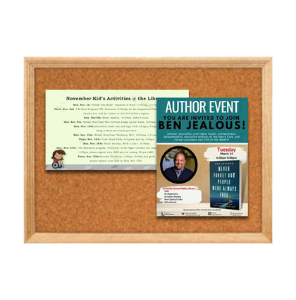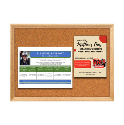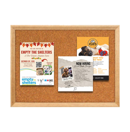 On Many Large Bulletin Boards Sizes with Decorative Wood Framed. Custom Cork Bulletin Boards are Also Available. Call for Custom Quote.