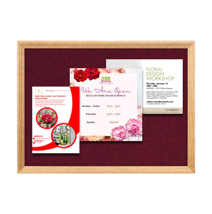 Additionally, we offer Decorative Bulletin Boards in Over 40 Sizes, like these popular wood frame sizes: 8.5 x 11, 11 x 17, 14 x 14, 18 x 36, 24 x 60, & 48 x 96, making it easier to find the indoor fabric bulletin board that’s right for your indoor message board needs..