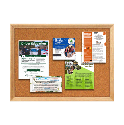 Thinking about a Custom Cork Board? Our Custom Design Department can design and create any style bulletin board with your choice of 200+ wood and metal frame profiles and a variety of custom bulletin board sizes. With our 20 years of experience in custom display solutions, we can create the right framed cork bulletin board for your indoor or outdoor location. Contact us to learn more.