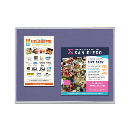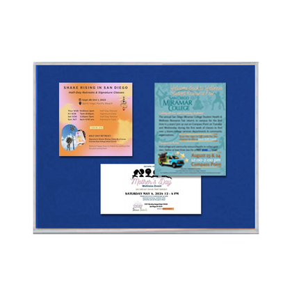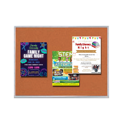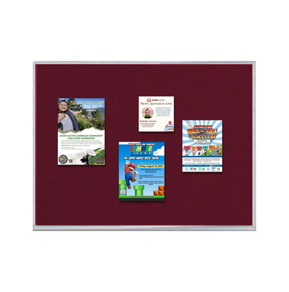 Need a Fabric Tackboard for your Office Bulletin Board? We offer Aluminum Framed Cork Boards in over 46 Different Indoor Bulletin Board Sizes, like: 8.5 x 11, 11 x 17, 14 x 14, 18 x 36, 24 x 60, & 48 x 96. In addition, our indoor wall mounted fabric message boards feature a 5/8 Inch Notice Board Depth, 1/2 Inch Silver Aluminum Trim and natural tan cork board surface affixed to sturdy fiberboard.
