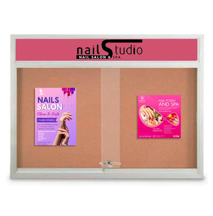 More than 48x36 Glass Bulletin Boards. We have it all; Large Outdoor Metal Framed Bulletin Board with Header, an Indoor Designer Wood Framed Cork Board with Lights, 1,2,3 and 4 door bulletin boards -- all types of custom cork boards, wall mount, free standing, enclosed, framed or frameless; call us for more details.