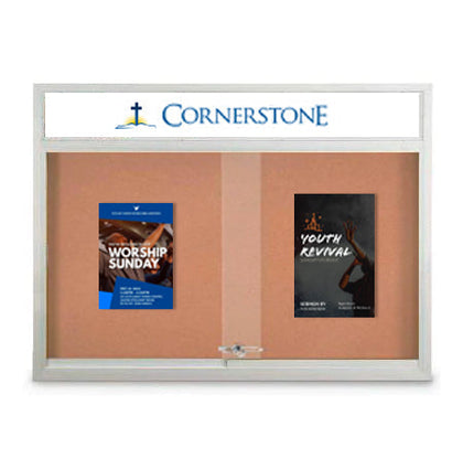 More than 60x24 Glass Bulletin Boards. We have it all; Large Outdoor Metal Framed Bulletin Board with Header, an Indoor Designer Wood Framed Cork Board with Lights, 1,2,3 and 4 door bulletin boards -- all types of custom cork boards, wall mount, free standing, enclosed, framed or frameless; call us for more details.
