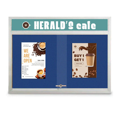 More than 60x48 Glass Bulletin Boards. We have it all; Large Outdoor Metal Framed Bulletin Board with Header, an Indoor Designer Wood Framed Cork Board with Lights, 1,2,3 and 4 door bulletin boards -- all types of custom cork boards, wall mount, free standing, enclosed, framed or frameless; call us for more details.