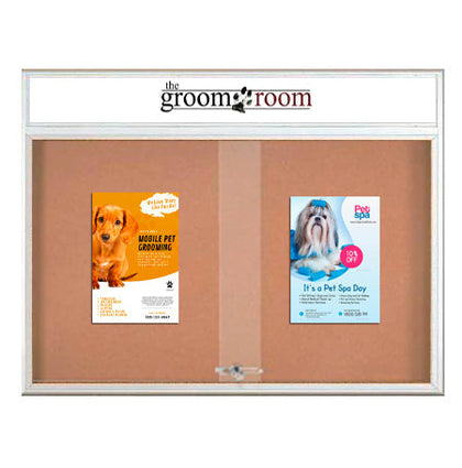 More than 72x36 Glass Bulletin Boards. We have it all; Large Outdoor Metal Framed Bulletin Board with Header, an Indoor Designer Wood Framed Cork Board with Lights, 1,2,3 and 4 door bulletin boards -- all types of custom cork boards, wall mount, free standing, enclosed, framed or frameless; call us for more details.