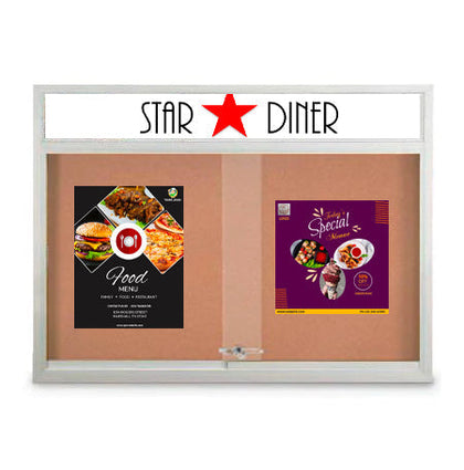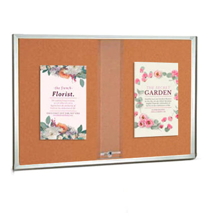 More than 84x24 Glass Bulletin Boards. We have it all; Large Outdoor Metal Framed Bulletin Board with Header, an Indoor Designer Wood Framed Cork Board with Lights, 1,2,3 and 4 door bulletin boards -- all types of custom cork boards, wall mount, free standing, enclosed, framed or frameless; call us for more details.