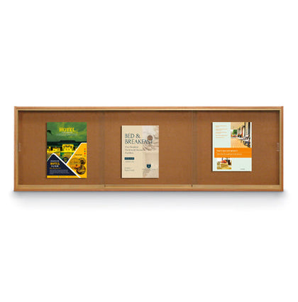 SwingCase wall display board has 3 sliding glass doors. With the 84" w x 36" h cabinet size and large tempered glass doors your postings have an unobstructed viewing area. That means you get to pin and view more messages, posters, ads, and other printed information than other enclosed message cork boards with typical metal or wood framed cabinet doors.