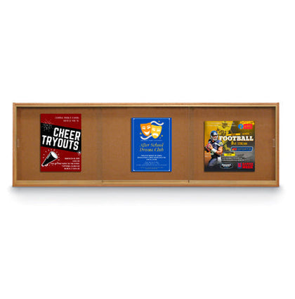 SwingCase wall display board has 3 sliding glass doors. With the 84" w x 48" h cabinet size and large tempered glass doors your postings have an unobstructed viewing area. That means you get to pin and view more messages, posters, ads, and other printed information than other enclosed message cork boards with typical metal or wood framed cabinet doors.