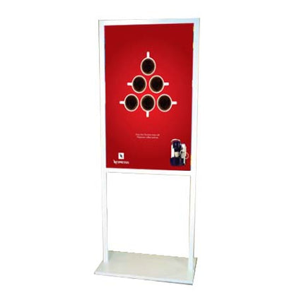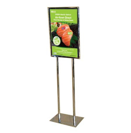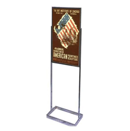 - 22x56 Large Poster Display Floor Stand. A tall 22x56 poster is bound to grab the attention of passersby. Use this large free standing poster frame to display a single-sided or double-sided graphic. The weighted steel base keeps this lengthy poster holder standing upright in position. In addition, this slim but sturdy metal floor stand features a slide-in frame, so you can change and update printed graphics by inserting through the top slot of the frame.