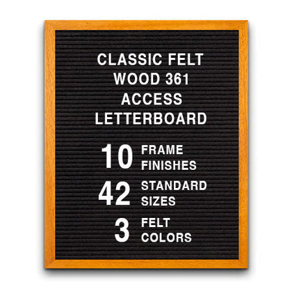 Felt Letter Board with 10 Popular Wood Frame Finishes