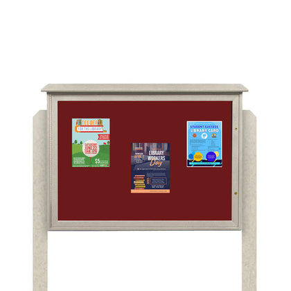 If you plan to install your outdoor cork board in front of your business, school, church, or other organization, we also offer free-standing options with posts. These include 8-foot or 10-foot posts that attach to the sides of the cases using pre-drilled holes for easy mounting. Bolts are included.