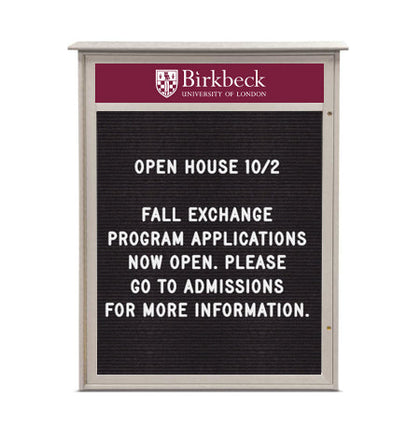 Each letter board message center brings solid security and optimal display features to your location. These features include a 3.75-inch display case depth, front locks, six faux wood-style finishes, maintenance-free high-density polyethylene construction, bottom weep holes to help drain water, and vents to reduce condensation on the doors.