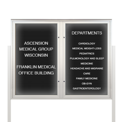 Our collections of enclosed outdoor letter boards display cabinets have hinges in different locations, such as top or bottom hinged message centers and left or right hinged cases. No matter the location of these hinges, it's simple to open your display cabinet and make changes to your sign. If you're looking to maximize the viewable area of your letter board, select one of our message boards with sliding doors. These lockable sliding doors protect your letter board, but with less frame width, the viewing area of the letter board is more considerable.