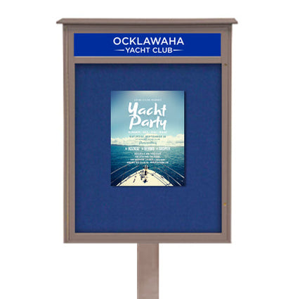 Our MINI offerings are equal to our standard outdoor enclosed bulletin boards, just more compact. These are ideal for smaller spaces, like entryways. All features on this board are the same—the double doors, the glass, the bottom piano hinge door, and the roof overhang. Our MINIs come with an 8-foot single post. Even as a smaller product, no one will ever miss your important messages, thanks to the double-sided single doors.