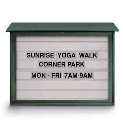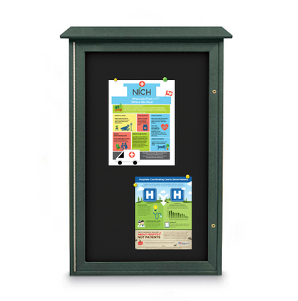 These USA made outdoor enclosed bulletin boards and message center kiosks are built for exterior environments, featuring eco-friendly, maintenance-free construction that won't rot, crack or split. Unlike other outdoor information boards, ours feature a reliable Polyethylene design and self-healing cork. They’re even impervious to water, chemicals, and insects. Our message board displays are guaranteed to last. All-weather message boards include collections with wide-ranging features that include weather-resistant, weatherproof and waterproof attributes that meet all kinds of exterior applications.