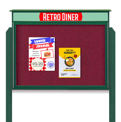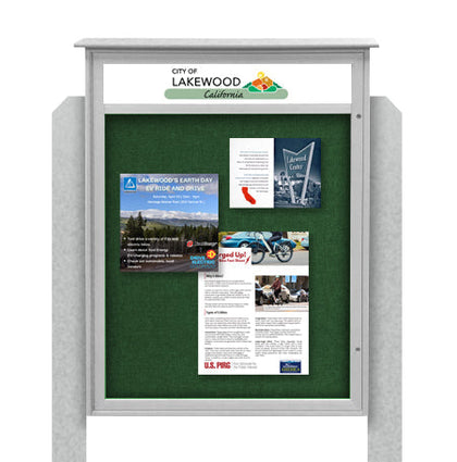 24" x 32" Viewable Area Outdoor Message Center Cork Board with Header | Single Door with Posts