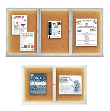 Are you looking for a Single Door Poster Display Case? Or 2-door, 3-door, or 4-door poster case? If you don't see the size of an enclosed display case that you need, is it possible to have an outdoor custom poster case made for one unit? Can it be powder coated in a different or matched color? Can the cork board be a different color than the typical natural tan color? Are outdoor Vinyl Covered Cork Board Colors available to enhance the poster case presentation? There are many other questions that you have. We'll do our best to provide the answers to all of them.