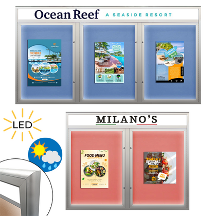Our wall poster display collections offer various weather-resistant and weatherproof models and cabinet sizes to meet your outdoor display requirements. These signage fixtures protect your signage materials from the typical day-to-day weather conditions while keeping tampering at bay.