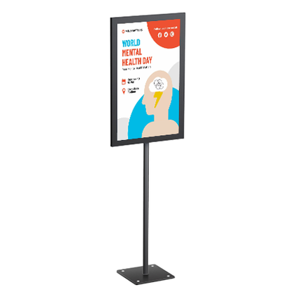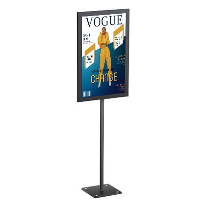 Designed for sustained commercial use, the display features a steel sign frame (1/2" wide) mounted on a 1/2" diameter steel tube. The materials used ensure longevity and resistance to daily wear and tear. The frame features precision-mitered corners for a clean, professional look. Despite its strength, the display is lightweight, weighing approximately 3 LBS, making it easily portable for temporary events or changes in store layout. Note that this unit is intended for indoor use.