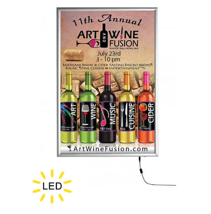 Double-Color Snap frames add a modern touch to your interior environment. The elegantly designed 2 -Color Snap Frames come in two different color combinations. The first has a Black Outer Trim and Silver Inner Frame Finish. The second style has Red Outer Trim and Silver Inner Frame Finish. Combo Snap Frame Finish, in the right interior environment, helps draws attention to your sign frame poster, promotion, message or announcement. 2-color snap frames are a unique style we offer to compliment wide-ranging interior decors. Choose from two sizes 24” x 36” snap frames and 22x28 snap frames. Wall mount portrait or landscape orientation.
