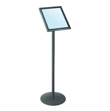 Ad Promo Frames are more than just sign display frames, these eye-catching fast change advertising frames and promotional sign frames are economical and cost effective picture frame solutions to make sure your messages and graphics get noticed throughout your retail store, organization or corporate facilities. These patented snap frames also known as clip frames and grip frames come in 5x7, 8x10, 8.5x11 and 11x17 frame sizes, are ideal as table top sign holder frames and can also be wall mounted portrait or landscape. The aluminum snap open frame has a built-in stand that tilts the frame back at a favorable viewing angle. Place these colorful opti frame designed sign frames easily on shelves, on or near product displays, on top of boxes, counters, tabletops, cabinets –wherever your message or announcement can be most effective.