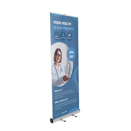 You can insert your printed banner into the base. Or we can provide a printed banner with your graphic and insert it into the retractable banner stand base. By doing this, we ensure the banner stand will be operable the moment you receive it.