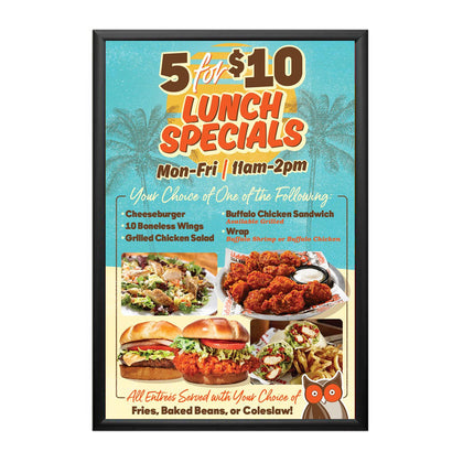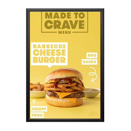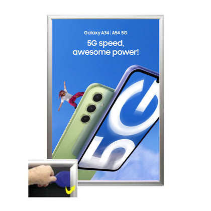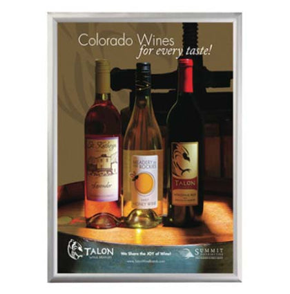 Keep your marketing and informational posters protected with these high-quality security snap frame displays. Crafted out of a anodized metal frame finish, these options measure 1” wide and come in five different sizes—8.5”x11”, 20”x30”, 22”x28”, 24”x36”, and 30”x40”. These can be positioned in portrait or landscape orientation according to your display needs. Place them in hallways, entrances, restrooms, or anywhere else that could offer useful information to a guest or potential customer. A lever tool is included that will allow you to open and close your frame. Without it, the frame cannot be opened, ensuring the safety of your materials. Placing your posters in the frame takes seconds, making it a very convenient and worthwhile investment for your business or office. An anti-glare Protective PET-G overlay is also included with your purchase to keep your displayed material looking great. Please note that these security snap frames are for indoor use only.