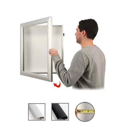 SwingFrame shadow boxes come with a wide selection of custom wood and metal frame profiles, colors, and finishes, including the ever-popular black shadow box and the white shadow box finish. That means the picture frame, the box interior, and the cabinet's exterior sides are all black or white. You can also mix and match the colors. Such as white on the inside cabinet and black on the outside. Whatever works best for your indoor décor or space. And we'll build it, whether it's one unit or a bulk order, with many large shadow box display cases.