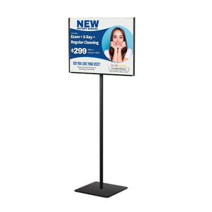 11 x 17 Lightweight Countertop or Floor, Steel Pedestal Display Stand Two-Sided + Fixed Height Post 18"