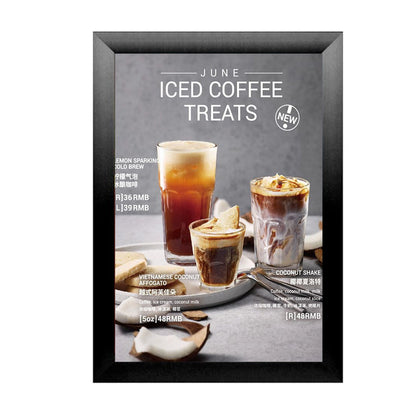 With easy snap poster frames from Displays4Sale, You can quickly change posters, signs, advertising, photography, menus, and other printed graphics sheets. When mounted to a wall, a cabinet, or other flat surfaces, snap open, place, or change your insert materials. Snap Shut. It's That Simple.