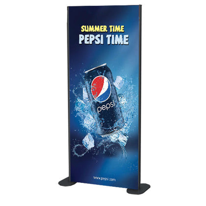 This impressive 84-inch, tall floor stand features a convenient slide-in frame design that allows for quick and effortless graphic changes. Made from lightweight yet durable aluminum alloy, this sign stand is easy to move around indoor spaces, making it perfect for events, retail settings, and exhibitions. Its sturdy construction not only provides stability but also gives a sleek, modern appearance to your displays, effectively drawing attention to your graphics.