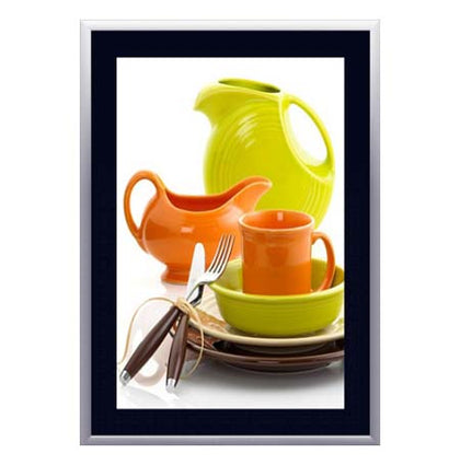 With two best selling frame finishes; Black and Satin Sliver, and 24+ matboard colors, this 30" x 40" slide-in frame has a multitude of color combinations to help attract more attention to your graphics and messages.