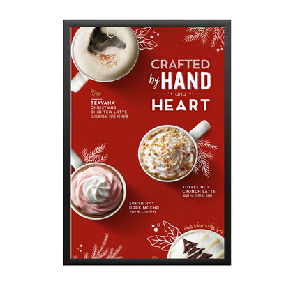 - Quick-Changing, all 4 frame rails snap-open for easy poster changes